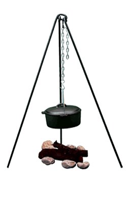 Hang your Dutch ovens from this handy-dandy Campfire Tripod! Constructed of forged iron, this heavy-duty baby will hold Cast Iron Dutch Ovens! It's easy to set up and has an adjustable 26" chain so you've got control of the heat. It holds up to 40 lbs. Measures 42 1/2" high and weighs 9 lbs. Get your three-legged helper ONLINE today! Texsport Campfire Tripod, Black