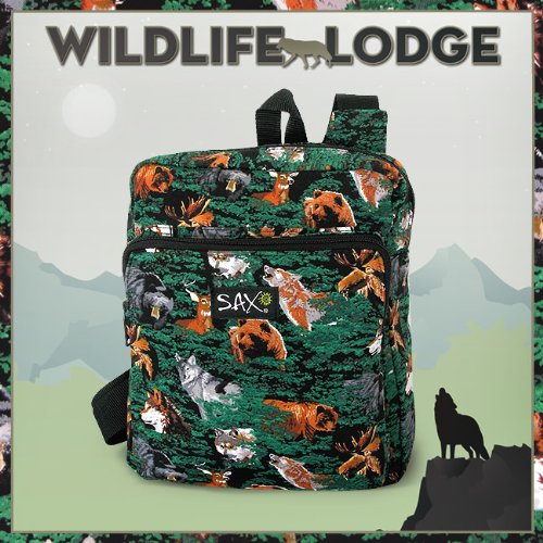 Let's have a look at our Wolf Bear Deer Outdoors Theme Compact Backpack by Broad Bay features